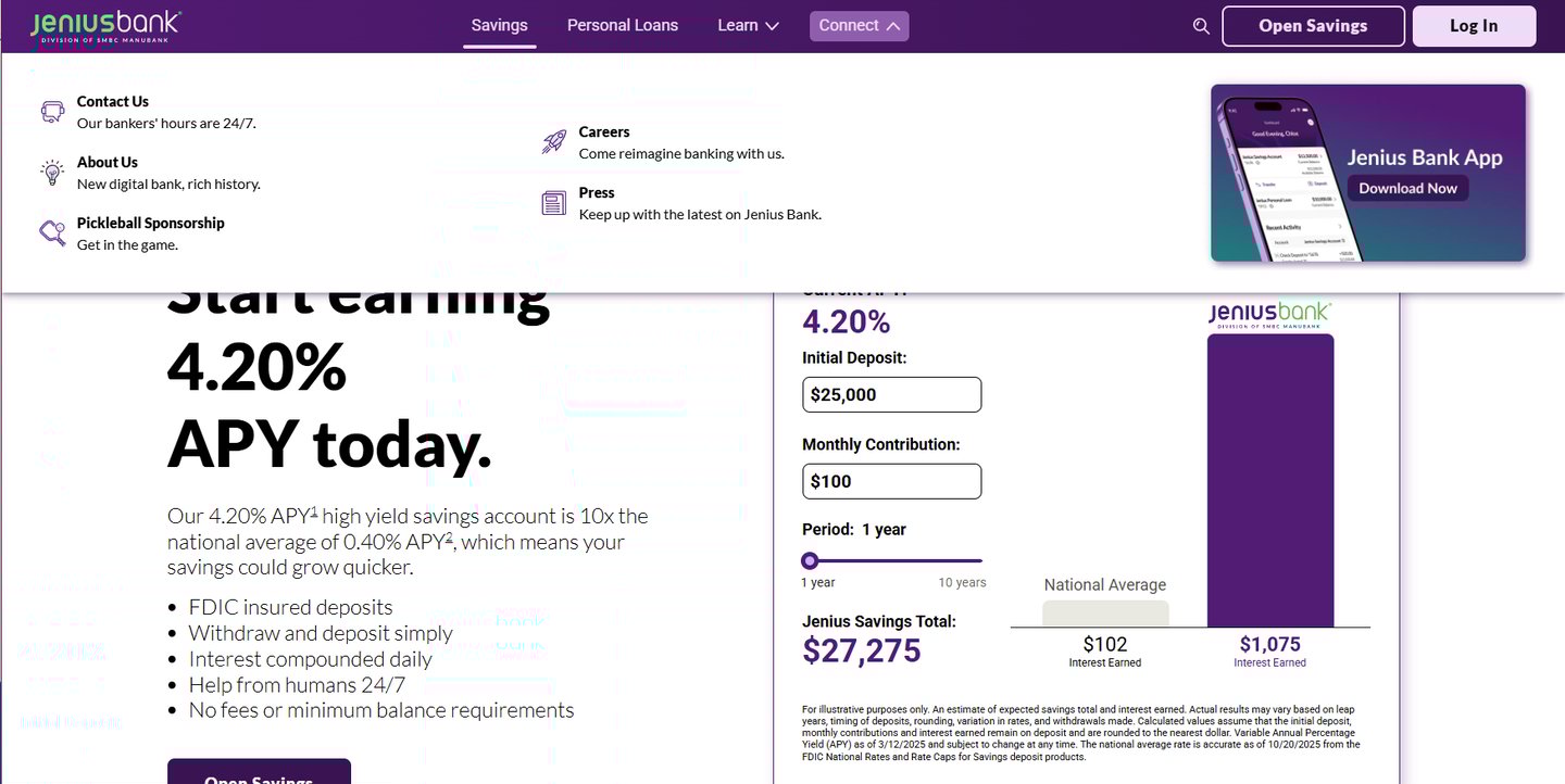 Professional Disclosure: Jenius Bank underwent a company-wide wind-down in early 2026. As of January 2026, I have not had control over the website's management, design, or technical integrity. The current site state does not reflect the original design standards or user experience benchmarks maintained during my tenure.